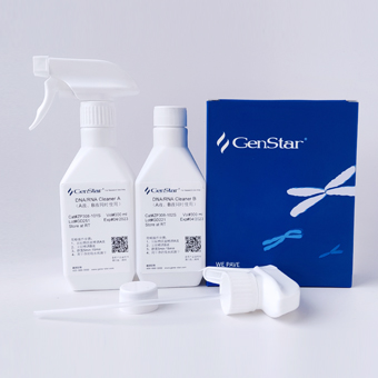 核酸(DNA/RNA)懸深顆粒,即氣溶膠污染物是導(dǎo)致 PCR 結(jié)果的假陽性原因之一。在分子生物學(xué)實(shí)驗(yàn)室中,核酸污染的清除是保證實(shí)驗(yàn)準(zhǔn)確性的有效措施。本產(chǎn)品由兩種單獨(dú)使用沒有毒性的溶液組成,混合后產(chǎn)生活性氧自由基,實(shí)現(xiàn)對核酸片段氧化降解,清除核酸(DNA/RNA)懸浮顆粒及物體表面核酸污染。本產(chǎn)品適用于生物實(shí)驗(yàn)室的清潔,通過對超凈臺面、實(shí)驗(yàn)墻面、移液槍外殼等污染累積的地方進(jìn)行噴涂擦拭,在短時(shí)間內(nèi)消除各種操作表面的高水平 DNA 及 RNA 污染,清除氣溶膠污染,消除細(xì)菌或病毒類污染。